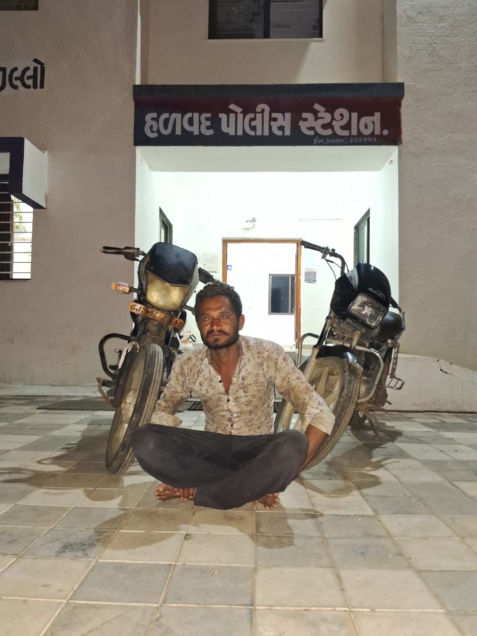 ત્યારે આ અંગે મળતી માહિતી મુજબ હળવદ પોલીસ સ્ટેશનનો સ્ટાફ વિસ્તારમાં પેટ્રોલિંગમાં હતા તે દરમ્યાન હળવદ ટીકર રોડ ખાતે એક શંકાસ્પદ બજાજ કંપનીનું પ્લેટીના મોટર સાયકલ ચાલક નીકળતા તેને રોકાવી મોટરસાયકલને જોતા આગળ નંબર પ્લેટ સાદી હોય જેમાં GJ-03- BL-2649 લખેલ હોય અને પાછળ નંબર પ્લેટ ન હોય જેથી ઈસમનુ નામ ઠામ પુછતા પોતે પોતાનુ નામ રણછોડ ઉર્ફે હકો ઉર્ફે જીવો વિઠ્ઠલભાઈ સુરેલા રહે. જોગડ ગામ, તા.હળવદ જી.મોરબી વાળો હોવાનુ જણાવેલ ત્યારબાદ આરોપી મોટરસાયકલ ચાલકને કાગળો બાબતે તેમજ મોટર સાયકલ બાબતે પુછપરછ કરતા સંતોષકારક જવાબો આપતો ન હોય જેથી મોટરસાયકલના રજીસ્ટ્રેશન નંબર GJ-03-BL-2649 ઈ-ગુજકોપ પોકેટકોપ મોબાઈલમાં નાખી માલીક અંગે સર્ચ કરતા મો.સા ના માલીક ઇમત્યાઝ અબાસભાઇ શેખ રહે. પોપટપરા માઉન્ટેન પોલીસ લાઈન રાજકોટ વાળા હોવાનું લખાઈ આવેલ હોય જેથી ઇસમને વધુ પુછપરછ કરતા ઈસમે અજીતગઢ ગામેથી ચોરી કરેલ હોવાનું જણાવેલ હોય તેમજ વધુ પુછપરછ કરતા બીજુ મો.સા. હળવદ ભવાની મેડીકલ પાસેથી ચોરી કરેલ હોવાની કબુલાત કરતા બંને મોટરસાયકલ રીકવર કરી આરોપી રણછોડ ઉર્ફે હકો ઉર્ફે જીવો વિઠ્ઠલભાઈ સુરેલા રહે. જોગડ ગામ, તા. હળવદવાળાને ઝડપી પાડી ધોરણસર કાર્યવાહી કરવામા આવેલ છે.