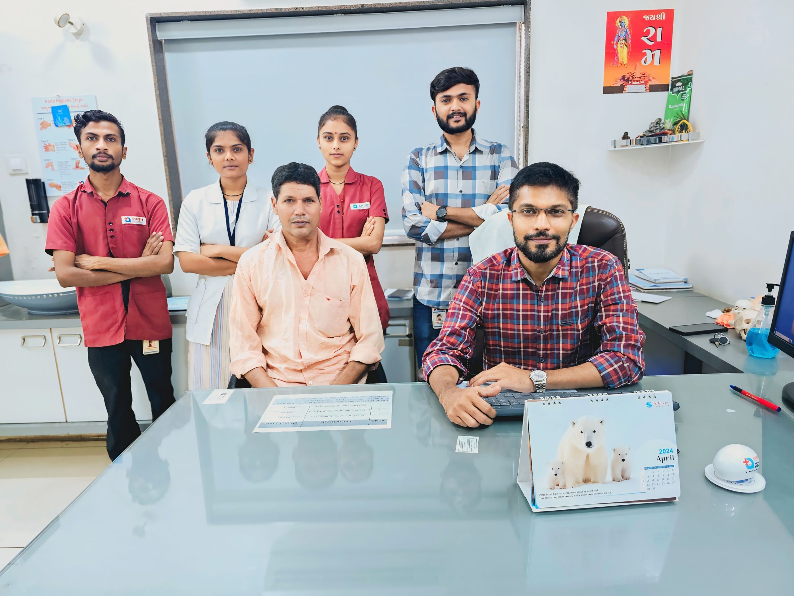 શિવાભાઈ નામના દર્દીને પગમાં ઇજા પછી ભારે ચેપ લાગી ગયો હતો.પગમાં સાથળથી માંડીને નીચે ઘૂંટી સુધી ચામડી કાળી પડી ગઈ હતી અને રસી આવતી હતી. શરૂઆતમાં ટંકારા માં સારવાર લીધી પણ વધારે પડતી હાલત ખરાબ હોવાથી ત્યાંથી ડોક્ટરે રાજકોટ સારવાર માટે મોકલ્યા.