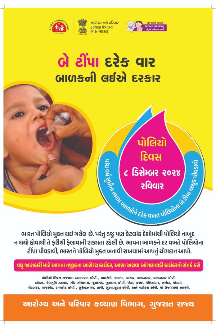આરોગ્ય વિભાગના ૬૦૦ કર્મચારીઓની ટીમ દ્વારા જિલ્લાના હાઈરિસ્ક વિસ્તારના ૦ થી ૫ વર્ષના કુલ ૩૭૪૮૭ બાળકોને ટીપા પીવડાવાશે