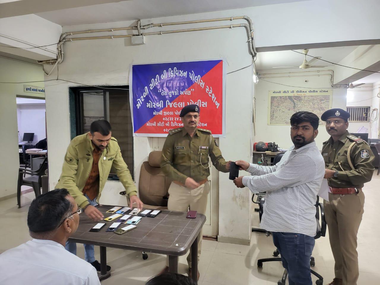 મળતી માહિતી અનુસાર, મોરબી જીલ્લા પોલીસ અધિક્ષક રાહુલ ત્રિપાઠીએ પ્રજા કલ્યાણ તથા પ્રજા ઉપયોગી કાર્યવાહી કરવા સુચના આપી હતી. તેમજ નાયબ પોલીસ અધિક્ષક પી.એ.ઝાલાના માર્ગદર્શન હેઠળ પોલીસ ઇન્સપેક્ટર એન.એ.વસાવા મોરબી સીટી બી ડીવીઝન પોલીસ સ્ટેશનના સુપરવિઝન હેઠળ મોરબી સીટી બી ડિવિજન પોલીસ સ્ટેશનના અરજદારોના ખોવાયેલ/ચોરાયેલ મોબાઇલ શોધી કાઢવા સ્ટાફને સુચના આપી હતી.