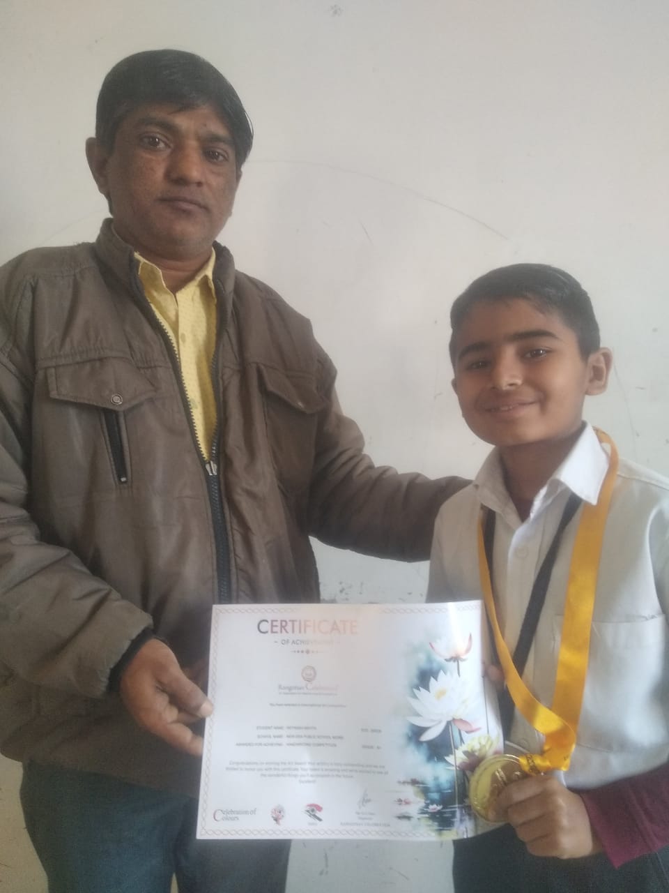 મોરબીના ન્યુ એરા પબ્લિક સ્કૂલના ધોરણ ૩ ના વિદ્યાર્થી રેયાંશ મહેતાએ ‘રંગોત્સવ સેલિબ્રેશન’ દ્વારા આયોજિત રાષ્ટ્રીય કક્ષાની કલા સ્પર્ધાની ‘હસ્તલેખન’ સ્પર્ધામાં ગોલ્ડ મેડલ જીત્યો છે. આ સફળતા બાદ હવે રેયાંશ મહેતા આંતરરાષ્ટ્રીય કક્ષાની કલા સ્પર્ધા માટે પસંદગી પામ્યો છે.
