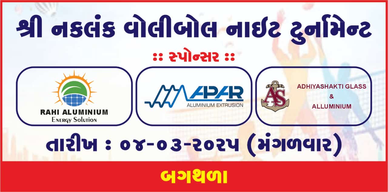મોરબી તાલુકાના બગથળા ગામના યુવાનો દ્વારા આજે તારીખ ૦૪-૦૩-૨૦૨૫ ને મંગળવાર ના રોજ રાત્રીના ૦૯ કલાકે નકલંક વોલીબોલ નાઈટ ટુર્નામેન્ટનુ આયોજન કરવામાં આવ્યું છે.