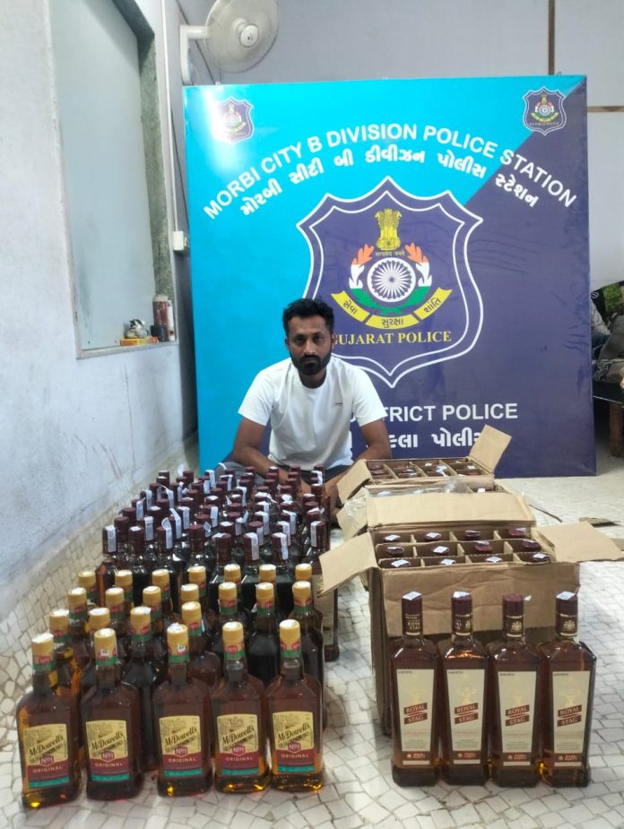 મોરબી બી ડિવિઝન પોલીસ ઇન્સપેક્ટર એન.એ.વસાવા તથા સર્વેલન્સ સ્ટાફ પેટ્રોલીંગમા હોય તે દરમ્યાન પો.હેડ.કોન્સ. જયપાલભાઇ લાવડીયા તથા પો.કોન્સ. સિધ્ધરાજસિંહ ઝાલા તથા પો.કોન્સ. રાજપાલસિંહને બાતમી મળી હતી કે, મોરબી શ્રધ્ધાપાર્ક સોસાયટી નવલખી રોડ ખાતે રહેતા ધવલ રાયધનભાઇ કોઠીવાર પોતાના રહેણાક મકાનમાં ઇંગ્લીશ દારૂનો જથ્થો ઉત્તારી ઇગ્લીશ દારૂનું વેચાણ કરે છે. જેથી પોલીસે આરોપી ધવલ કોઠીવારના રહેણાક મકાનમાં રેઇડ કરતા ભારતીય બનાવટની વિદેશી દારૂની અલગ અલગ બ્રાન્ડની બોટલ નંગ-132 (કુલ કિ.રૂ. 86,172)ના મુદ્દામાલ સાથે ઝડપી લીધો હતો. પોલીસે હાલ આરોપી વિરૂદ્ધ ગુન્હો નોંધી કાયદેસરની કાર્યવાહી હાથ ધરી છે.
