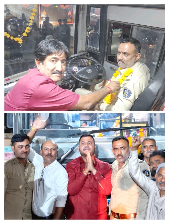 આજરોજ હળવદ બસ સ્ટેશન ખાતે ધ્રાંગધ્રા – દ્વારિકા પૂનમ સ્પેશિયલ લકઝરી બસ નું હળવદ ના નગરજનો દ્વારા વાજતે ગાજતે ઢોલ નગારા ના તાલે ઝૂમી અને ઉમળકા ભેર સ્વાગત કરવામાં આવ્યું હતું અને બસ ના ડ્રાઈવર અને કંડકટર ને ફુલ હાર પહેરાવી તેમનું પણ સ્વાગત અને સન્માન કરવામાં આવ્યું હતું અત્રે ઉલ્લેખનીય છે કે હળવદ વિસ્તાર ના ભાવિકો પૂનમ ભરવા માટે દ્વારકા જતા હોય છે પરંતુ ત્યાં જવા માટે પારાવાર મુશ્કેલી નો સામનો કરવો પડતો હતો ત્યારે આ પૂનમ સ્પેશિયલ બસ એસ.ટી વિભાગ દ્વારા શરૂ કરતા હાજર સૌ લોકો એ આ બસ રૂટ શરૂ કરવા બદલ ગુજરાત સરકાર ના મુખ્યમંત્રી ભૂપેન્દ્રભાઈ પટેલ , વાહન વ્યવહાર મંત્રી હર્ષભાઈ સંઘવી , સંસદસભ્ય ચંદુભાઈ શિહોરા , ધારાસભ્ય પ્રકાશભાઈ વરમોરા સહિત આ બસ રૂટ શરૂ કરવા માટે રજૂઆત કરનાર શહેર ભાજપ પ્રમુખ તપનભાઈ દવે સહિત એસ.ટી વિભાગ ના અધિકારી વિભાગીય નિયામક કરોતરા સાહેબ અને ડી. ટી. ઓ શ્રી ડાંગર સાહેબ નો આભાર વ્યક્ત કર્યો હતો આ તકે શહેર ભાજપ પ્રમુખ તપન દવે , બજરંગદળ ના પ્રદેશ સંયોજક ભાવેશભાઈ ઠક્કર , શહેર ભાજપ પૂર્વ પ્રમુખ કેતનભાઈ દવે , રવિભાઈ પટેલ , નગરપાલિકા કારોબારી ચેરમેન મહેશભાઈ કણઝરીયા , ભરતભાઈ કરોતરા, અશોકભાઈ તારબુંદીયા, જતીનભાઈ રાવલ, વી.કે.મકવાણા સહિત બહોળી સંખ્યા ગ્રામજનો એ આ પૂનમ સ્પેશિયલ બસ રૂટ ને ઉત્સાહભેર આવકારી હતી