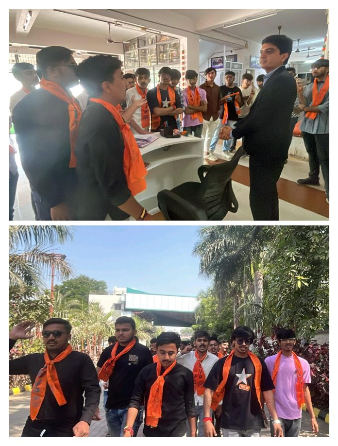 કૉલેજના પ્રિન્સીપાલ પાસે રજૂઆત દરમિયાન પણ પ્રિન્સીપાલ સાહેબ દ્વારા પોતે વિધાર્થીઓને ના નથી પાડી પરંતુ કાર્યક્રમનું આયોજન કરતી વિદ્યાર્થીઓની ટીમ દ્વારા ના પાડવામાં આવી છે આવી ખોટી વાતો કરીને વિધાર્થીઓને પરસ્પર ગુમરાહ કરવાનો પણ પ્રયત્ન કરવામાં આવ્યો. આ અંગે રજૂઆત કરતા કૉલેજના ટ્રસ્ટી પી.ડી કાંજીયા દ્વારા દાદાગીરી પૂર્વક જવાબ આપવામાં આવેલ. તેમજ કૉલેજમાં યોજાયેલ farwell પાર્ટીના કાર્યક્રમમાં કૉલેજના જ ઘણાં ખરા વિદ્યાર્થીઓને પ્રવેશ આપવાની મનાઈ કરવામાં આવેલ અને પોલીસ બંદોબસ્ત ગોઠવવાની ધમકી આપવામાં આવેલ. વિધાર્થીઓના આ પ્રશ્નો ના નિરાકરણ હેતુ નવયુગ કૉલેજ ખાતે બહોળી સંખ્યામાં વિદ્યાર્થીઓને સાથે રાખી અખિલ ભારતીય વિદ્યાર્થી પરિષદ મોરબી દ્વારા ઉગ્ર વિરોધ પ્રદર્શન સાથે રજૂઆત કરવામાં આવી.