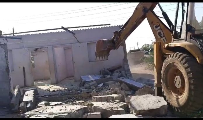 હળવદ પોલીસ સ્ટેશન વિસ્તારમાં ચરાડવા ગામની હદ વિસ્તારમાં કે.ટી.મિલ પાસે સદામ ગુલમહમદ ભટ્ટી તેઓ વિરુધ્ધમાં ઈંગ્લીશ અને દેશી દારૂના અને મારામારીના અને અપહરણ તથા તેમજ અન્ય અલગ અલગ ગુન્હાઓ દાખલ થયેલ છે તે અસામાજિક તત્વનું કબજા ભોગવટાનું રહેણાંક છે આ જમીન સરકારી હોવાનું પ્રાથમિક તપાસ કરતા જણાઈ આવતા ડિમોલેશનની કાર્યવાહી હાથ ધરવામાં આવી હતી સદરહુ જમીન આશરે 150 ચોરસ વાર હોય જે જમીનની જંત્રી મુજબ કિંમત અંદાજે 3,50,000/ નું દબાણ કરી પાકું મકાન બનાવેલ હોય જેનું ડિમોલેશન કરવામાં આવેલ છે.