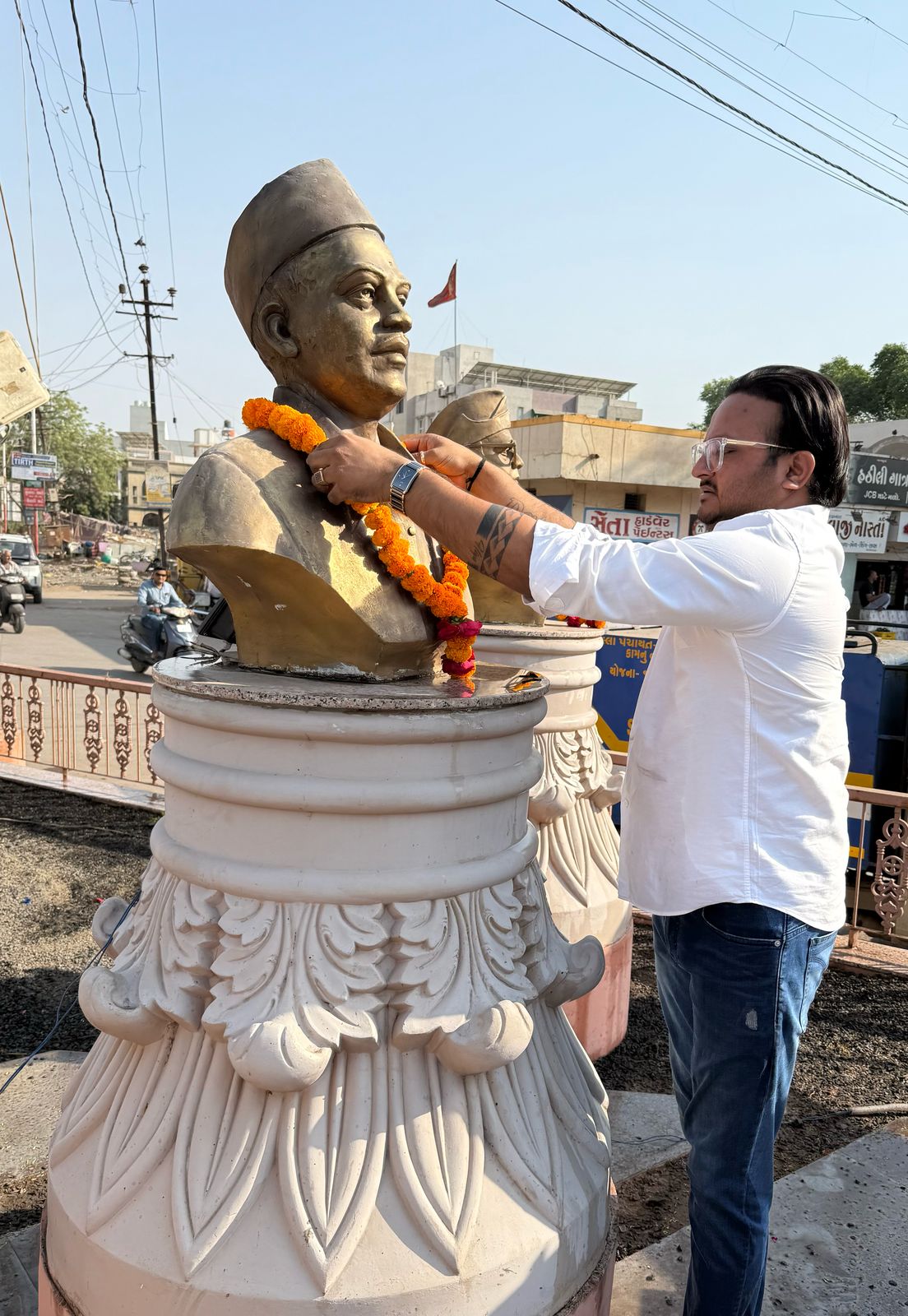મોરબી: સમગ્ર ભારતમાં આજે શહીદ દિન નિમિત્તે ભારતની આઝાદીના સાચા હીરો અને દેશ માટે હસતા મોં એ ફાંસીએ ચઢનાર શહીદોને યાદ કરવામાં આવે છે. ત્યારે મોરબીના સેવાભાવી યુવાન અને મોરબી જિલ્લા પંચાયતના ઉત્પાદન-સિંચાઈ વિભાગના ચેરમેન અજય લોરિયા દ્વારા આજે શહિદ દિવસ નિમિતે મોરબીના નવા બસ સ્ટેન્ડ સામે આવેલ શહિદ ભગતસિંહ, સુખદેવ, રાજગુરુ, નેતાજી સુભાષચંદ્ર બોઝ, ચંદ્રશેખર આઝાદ તથા લોખંડી પુરુષ વલ્લભભાઈ પટેલની પ્રતિમાની તથા તેની આસપાસ સફાઈ હાથ ધરવામાં આવી હતી. પ્રતિમાને સ્વચ્છ કર્યા બાદ પુષ્પાંજલી અર્પણ કરી શહીદોની ખુમારી અને દેશ દાઝને યાદ કરી અજય લોરીયાએ નાગરિકોને આઝાદીના મૂલ્યો જાળવવા અને રાષ્ટ્રવાદના પગલે દેશ અને સમાજને ઉપયોગી રહેવા આહવાન કરાયું હતું.