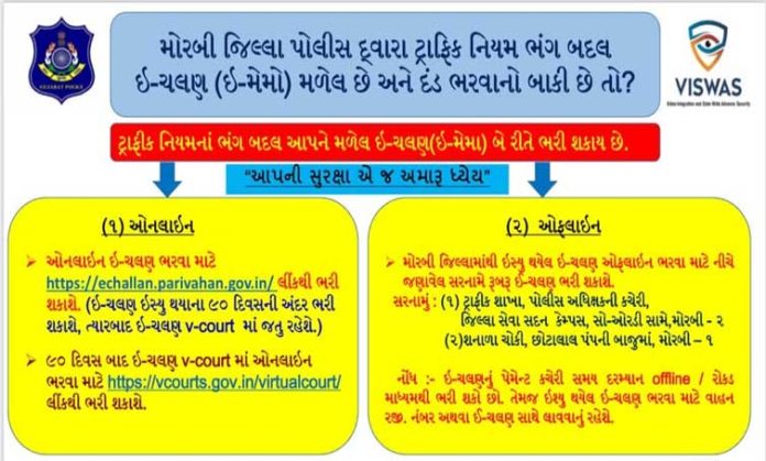 HomeGujaratમોરબી જિલ્લા ટ્રાફિક પોલીસ દ્વારા ઇ-ચલણ ભરવા અંગેની માર્ગદર્શિકા જાહેર કરાઈ
