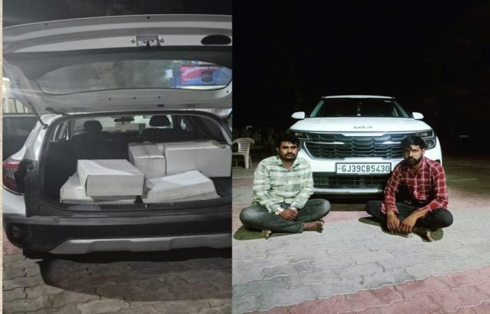 માળીયા (મીં) નેશનલ હાઇવે રોડ ઓનેસ્ટ ચેકપોસ્ટ નજીક કારમાં વિદેશી દારૂની હેરાફેરી કરતા બે ઇસમને માળીયા પોલીસે ઝડપી પાડ્યા છે. જ્યારે અન્ય એકનું નામ ખૂલતા પોલીસે તેને પણ ઝડપી લેવા તજવીજ હાથ ધરી છે.