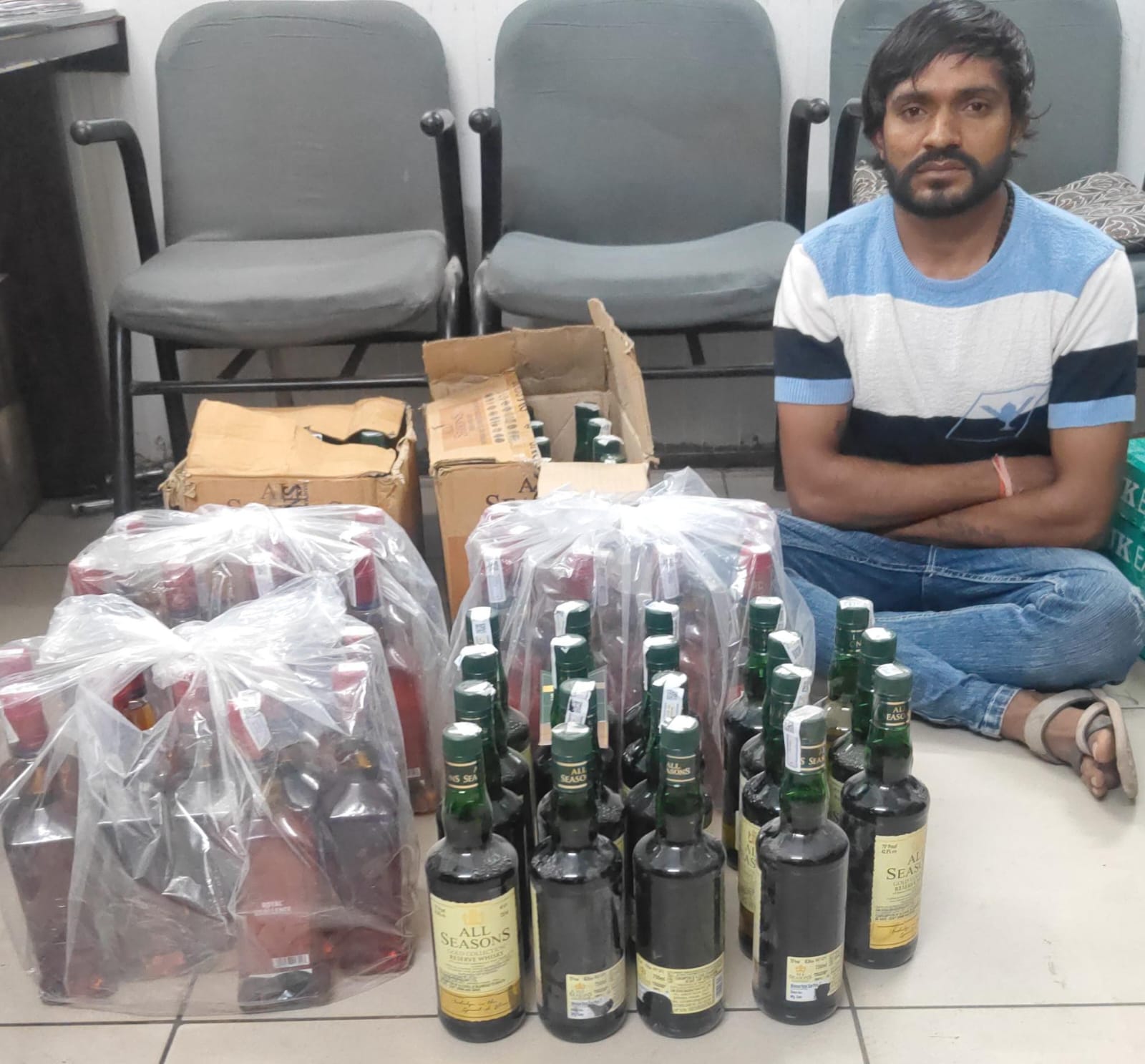 મળતી માહિતી અનુસાર, પોલીસ મહાનિરીક્ષક અશોકકુમાર યાદવ રાજકોટ વિભાગે પ્રોહી / જુગારની ગેરકાયદે પ્રવૃતિ સદંતર નેસ્ત નાબુદ કરી વધુમાં વધુ કેસો શોધી કાઢી અસરકારક કામગીરી કરવા સુચના આપી હોય પોલીસ અધિક્ષક રાહુલ ત્રિપાઠી મોરબી જીલ્લાના માર્ગદર્શન હેઠળ નાયબ પોલીસ અધિક્ષક પી.એ.ઝાલા મોરબી વિભાગ તરફથી વધુમાં વધુ પ્રોહી/જુગારના કવોલીટી કેસો શોધી કાઢી મોરબી જીલ્લામાં પ્રોહી/ જુગારની ગેરકાયદે પ્રવૃતિ નેસ્ત નાબુદ કરવા પોલીસ ઇન્સ્પેકટર એસ.કે. ચારેલની સૂચના તેમજ માર્ગદર્શન હેઠળ સર્વેલન્સ પોલીસ સબ ઇન્સ્પેક્ટર એસ.એન.સગારકા સર્વેલન્સ સ્ટાફના માણસો સાથે પેટ્રોલીંગમાં હતા તે દરમ્યાન પોલીસ કોન્સ્ટેબલ રમેશભાઈ મુંધવા, શક્તિસિંહ જાડેજાને સંયુકત બાતમી મળી હતી કે, ‘મોરબી તાલુકાના મકનસર પ્રેમજીનગર ગામે મોરબી-વાંકાનેર નેશનલ હાઇવે પર સંજયભાઈ ઉર્ફે ધુડો રાતૈયાના ઈંટોના ભઠ્ઠા પાસે સંજયભાઇ ઇંગ્લીશ દારુ સગેવગે કરવાની પેરવીમાં છે. જે ખાનગી બાતમીને આધારે તે જગ્યાએ જઈ રેઇડ કરતા એક શખ્સને ઇંગ્લીશ દારૂની બોટલો સાથે પકડી અલગ-અલગ બ્રાન્ડની ભારતીય બનાવટની ૭૫૦ મી.લી.ની કાચની કંપની શીલપેક ઇંગ્લીશ દારૂની રૂ.૪૭,૫૨૪ કિંમતની ૭૮ બોટલ સહિતનો મુદ્દામાલ કબ્જે કરી આરોપી શખ્સ વિરૂદ્ધ પ્રોહીબીશન એકટ હેઠળ ગુન્હો નોંધી આગળની તપાસ હાથ ધરી.