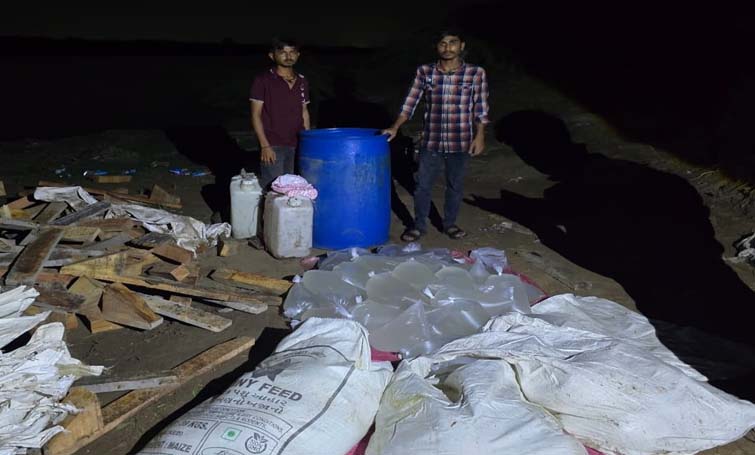 મોરબી એલસીબી પોલીસને સયુંકતમાં ખાનગીરાહે બાતમી મળી હતી કે, આરીફ જેડા રહે. મોરબી વીસીપરા ખાડા વાળો માણસો રાખી નવાગામ થી મેઘપર વચ્ચે મચ્છુ નદીના કાંઠે ખરાબામાં દેશી પીવાનો દારૂ બનાવવાનો આથો ગાળી ભઠ્ઠી ચલાવી દેશી પીવાનો દારૂ બનાવી વાહનમાં હેરાફેરી કરી કરાવે છે તેવી બાતમીના આધારે બાતમીવાળી જગ્યાએ રેઇડ કરતા એક મહિન્દ્રા પીકઅપ વાહન ઉભેલ હોય જેને કોર્ડન કરી ટોર્ચની લાઇટ કરી જોતા દેશી દારૂ બનાવવાની ભઠ્ઠી જેમાં દેશીદારૂ બનાવવાના ઠંડો તથા ગરમ આથો 1800 લીટર જેની કિ.રૂ.45 હજાર તથા 385 લિટર દેશી દારૂની કિંમત રૂ.77 હજાર તેમજ મહિન્દ્રા પીકઅપ મેકસ લોડીંગ વાહન કિ.રૂ.5 લાખ મળી કુલ કિં રૂ.6.22 લાખના મુદામાલ સાથે બે શખ્સો ફરદીન હાજીભાઇ મહમદભાઇ માણેક મ (ઉ.વ.19) તથા સાજીદ અયુબભાઇ બાબુભાઇ મીરા (ઉ.વ.19) રહે. બંને મોરબી નવલખી રોડ સેન્ટમેરી સ્કુલ પાછળ રણછોડનગર મુળ રહે.ધ્રાંગધ્રા જુની મોચીવાડ જી.સુરેન્દ્રનગરવાળાને ઝડપી પાડી પુછપરછ કરતા અન્ય એક શખ્સ આરીફ જેડા રહે. મોરબી વીસીપરા ખાડામાં મોરબીવાળાનુ નામ ખુલતા કુલ ત્રણ આરોપીઓ વિરુદ્ધ માળીયા(મીં) પોલીસ સ્ટેશનમાં પ્રોહીબીશન ધારા તળે ગુનો નોંધાવી આગળની ધોરણસરની કાર્યવાહી કરી છે.