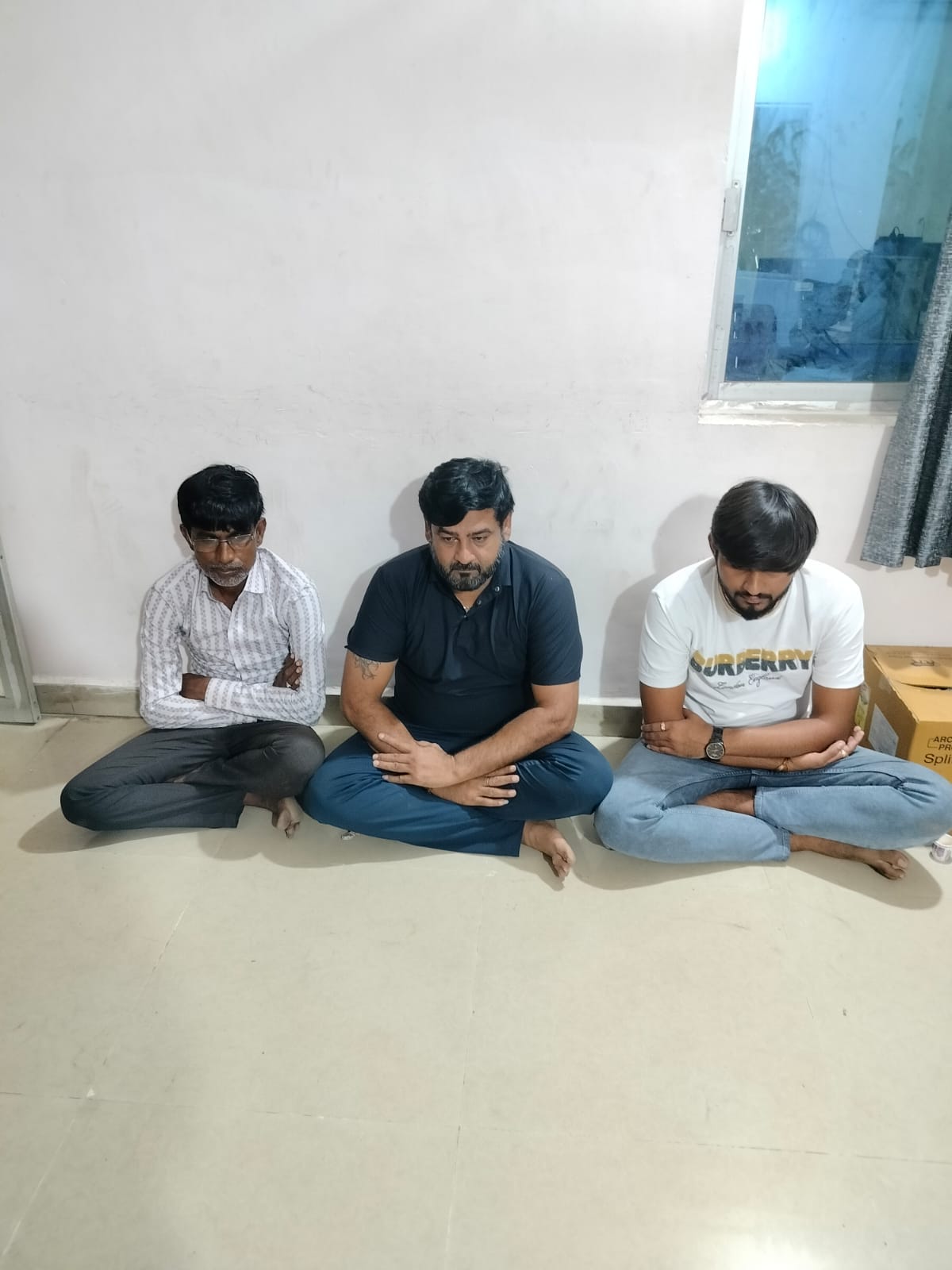 ટંકારા તાલુકા પોલીસ સ્ટાફને સયુંકતમાં ખાનગી રાહે બાતમી મળી હતી કે, સંજયભાઇ દુર્લભજીભાઇ પટેલ ટંકારા-લતીપર રોડ જબલપુર ગામની સીમમાં આવેલ ઉમાવંશી પોલીમર્સ નામના કારખાનાની ઓફીસમાં બહારથી માણસો બોલાવી જુગારનો અખાડો ચલાવે છે. જે બાતમીના આધારે રેઇડ કરતા તીનપત્તી રમતા 3 જુગારીઓ સંજયભાઇ દુર્લભજી ભાઈ ચારોલા (ઉ.વ.24) રહે. ટંકારા સરદારનગર તા.ટંકારા, પ્રીન્સભાઇ પ્રવિણભાઇ લો (ઉ.વ.23) રહે. ટંકારા ગાયત્રીનગર રૂપાવટી સોસાયટી તા. ટંકારા, શાંતીલાલ મગનભાઇ લો (ઉ.વ.47) રહે. ટંકારા ખડીયાવાસ તા.ટંકારાવાળાને રોકડ રૂ.58 હજાર તથા 5 મોબાઇલ ફોન, વેન્ટુ કાર મળી કુલ કી.રૂ.2.88 લાખના મુદ્દામાલ સાથે ઝડપી પાડી તમામ શખ્સો વિરુદ્ધ જુગાર ધારા કલમ-4, 5 મુજબ ટંકારા પોલીસ સ્ટેશનમાં ગુનો રજીસ્ટર કરવામાં આવ્યો છે.