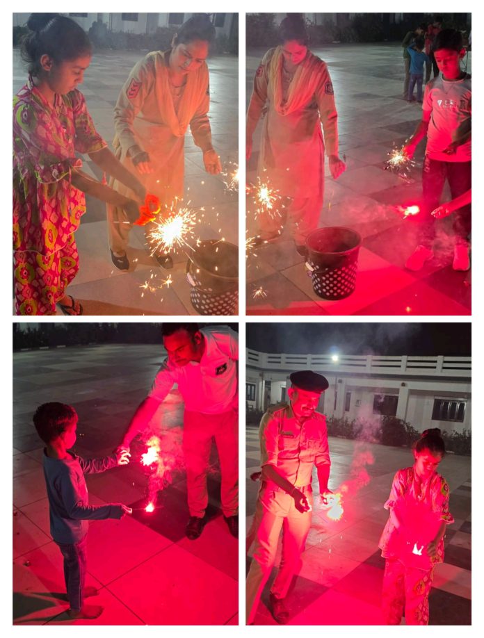 પોલીસ કર્મચારીઓએ બાળકોને ફાટકડા અને મીઠાઈઓ આપી તહેવારની ઉજવણી કરી હતી. સાથે સાથે બાળકોને દિવાળીની શુભેચ્છાઓ પાઠવી સૌહાર્દ અને આનંદનું વાતાવરણ સર્જાયું હતું.