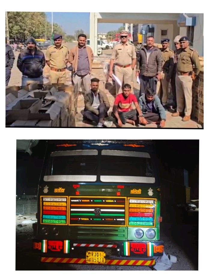 આ અંગે મળતી માહિતી મુજબ ટંકારા પોલીસના સર્વેલન્સ સ્ટાફ નાઇટ પેટ્રોલીંગમાં હોય તે દરમ્યાન સર્વલન્સ સ્ટાફને મળેલ ખાનગી રાહે બાતમી મળેલ કે, છતર જી.આઇ.ડી.સી.માં આવેલ જલારામ પ્લાસ્ટીક નામના ગોડાઉનની બાજુમાં આવેલ નામ વગરનું ગોડાઉન પ્રિન્સ વિરેન્દ્રભાઇ ઝાલરીયા રહે. મોરબી વાળાએ ભાડેથી રાખી તે ગોડાઉનમાં ચોરી છુપીથી અલગ અલગ વાહનોમાં પરપ્રાંતમાંથી ઇંગ્લીશ દારૂનો જથ્થો લાવી તેનો સંગ્રહ કરી ચોરીછુપીથી તેનુ વેચાણ કરે છે. અને હાલમાં તે ગોડાઉનમાં વાહનો, માણસોની શંકાસ્પદ પ્રવૃતિ ચાલુ હોવાની બાતમીના આધારે રેઇડ કરતા નામ વગરના ગોડાઉનમાં (૧) ટ્રક કન્ટેનર ટ્રેઇલર નંબર-RJ-01-GB-5019 (૨) બોલેરો પીકઅપ વાહન નંબર-GJ-36-V-3401 તથા ગોડાઉનમાંથી ઇંગ્લીશ દારૂની બોટલો નંગ-૫૯૪૦ કી.રૂ.૭૭,૨૨,૦૦૦/- તથા પ્લાસ્ટીકના ચપલા નંગ-૨૭,૬૦૦ કી.રૂ.૨૭,૬૦,૦૦૦/- તથા અન્ય મુદ્દામાલ મળી કુલ કિંમત રૂ ૧,૧૭,૨૨,૮૦૦- ના મુદામાલ સાથે ત્રણ ઇસમો કમલેશ બાપુલાલ વડેરા રહે. જોલાવટ ગામ તા.કલીનજરા જી.બાસવાડા (રાજસ્થાન), જીતમલ કાલીયા કટારા રહે. રતનપુરા નોગામાં તા.બાગીદોરા જી.બાસવાડા (રાજસ્થાન), તથા નાનીલા વાલીયા સીંગાડા રહે. જાંબુડી ગામ તા.કલીનજરા જી.બાસવાડાવાળાને પકડી પાડી પુછપરછ કરતા અન્ય પાંચ ઇસમો કેહરારામ હરખારામ રહે. સેવરો કા બાસ લુણાડા, બાડમેર (રાજસ્થાન), પ્રિન્સ વિરેન્દ્રભાઇ ઝાલરીયા રહે. મોરબી, માણસુરભાઇ દેવદાનભાઈ ડાંગર રહે. મોરબી, બોલેરો પીકઅપ વાહન નંબર-GJ-36-V-3401 નો ચાલક રાજુરામ રહે. રાજસ્થાન, તથા ટ્રક ટ્રેઇલર નંબર-RJ-01-GB-5019 માં ઇંગ્લીશ દારૂનો જથ્થો ભરી મોકલનાર સહિત કુલ-૮ ઇસમો વિરૂદ્ધ ટંકારા પોલીસ સ્ટેશન ખાતે પ્રોહીબીશન ધારા તળે ગુનો નોંધાવી આગળની ધોરણસરની કાર્યવાહી કરેલ છે.
